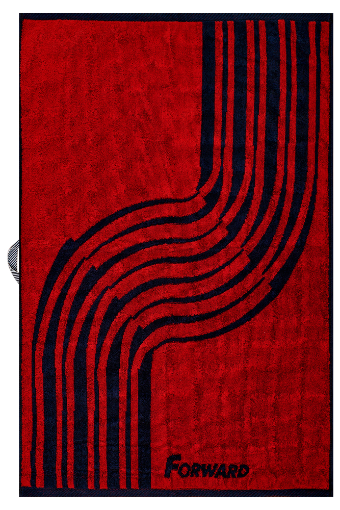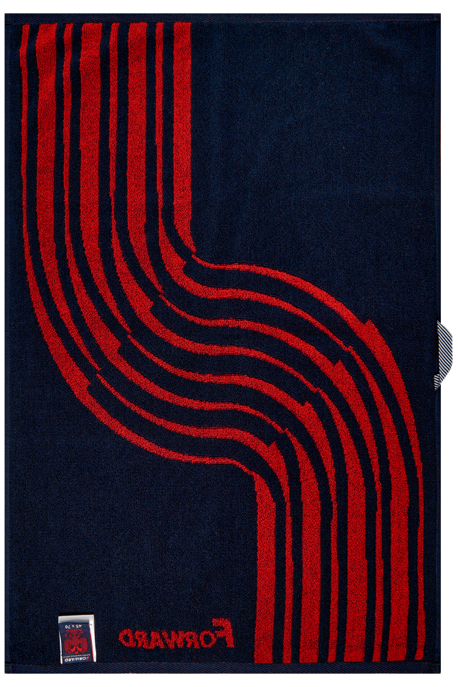 В комплект входит два вида полотенец: Полотенце банное двустороннее, размеры 70,0 см x 140,0 см Полотенце лицевое двустороннее, размеры 45,0 см x 70,0 см Изделие декорировано жаккардовым изображением, выполненного сочетанием махрового переплетения, из пряжи, тройного кручения, петельного переплетения, 21/3. Нанесение: «FORWARD», «Трек». Состав: 100% хлопок,480 г/м 2.