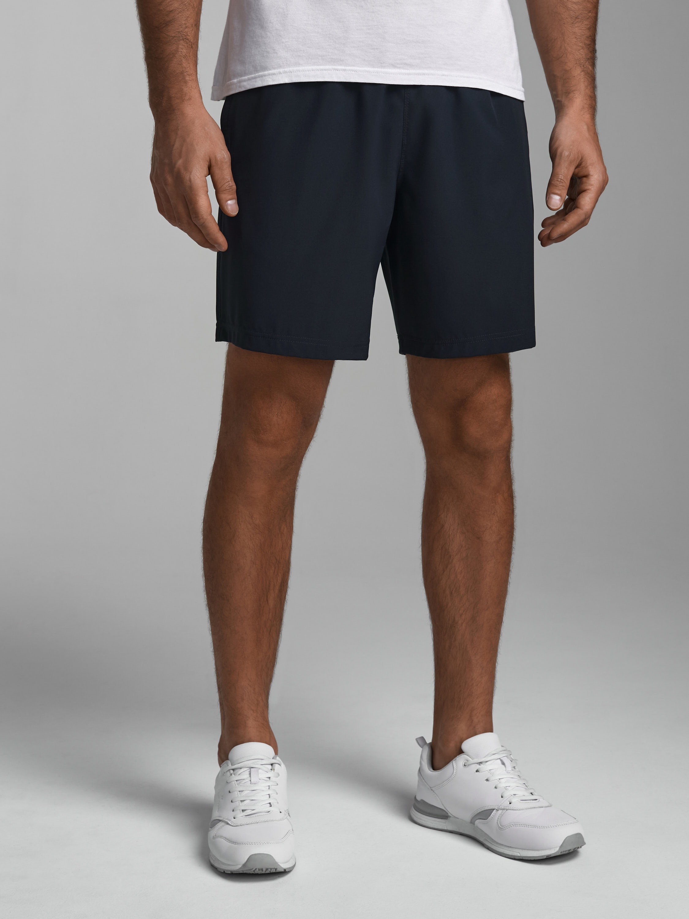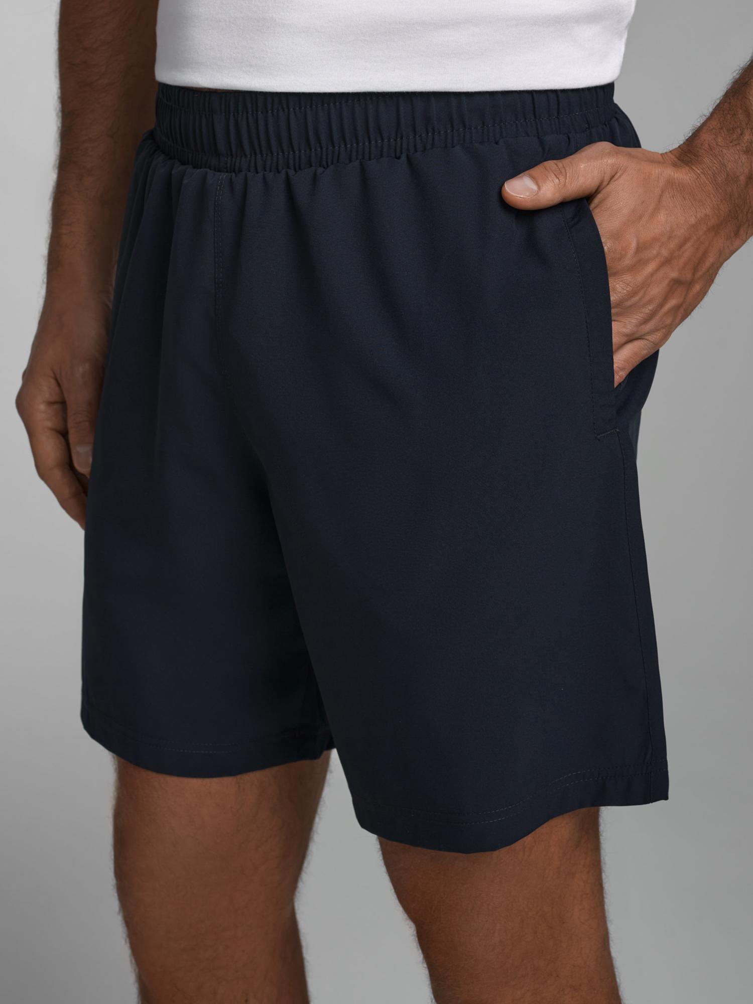 Классические мужские шорты из легкой эластичной плащевки. В боковых швах обработаны карманы. Пояс шорт по талии регулируется шнуром.