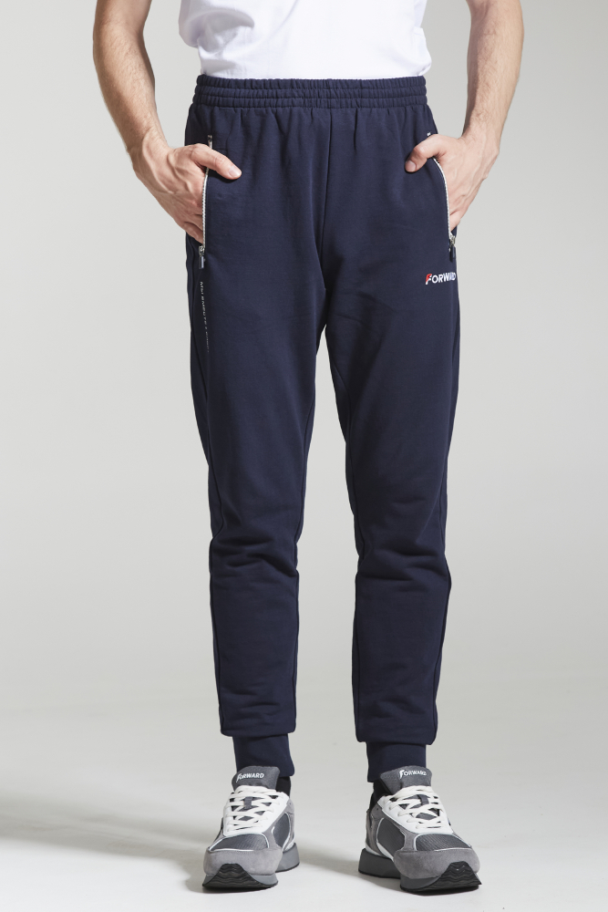 Брюки зауженного силуэта с боковыми, прорезными карманами на тесьму молнию.