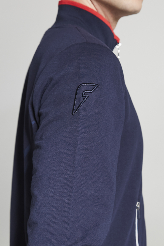Полочка с центральной застежкой на тесьму молнию, с воротником стойка.