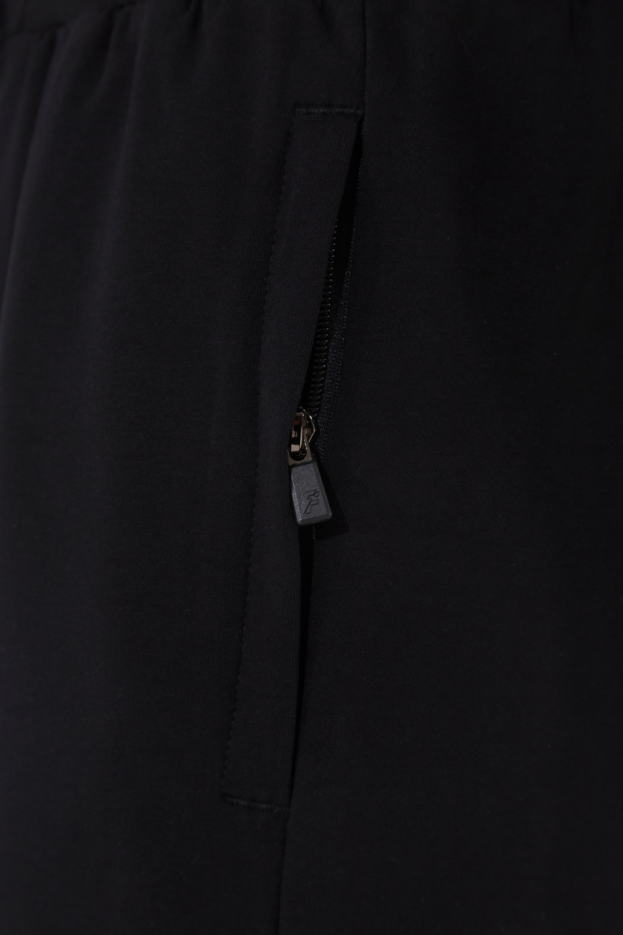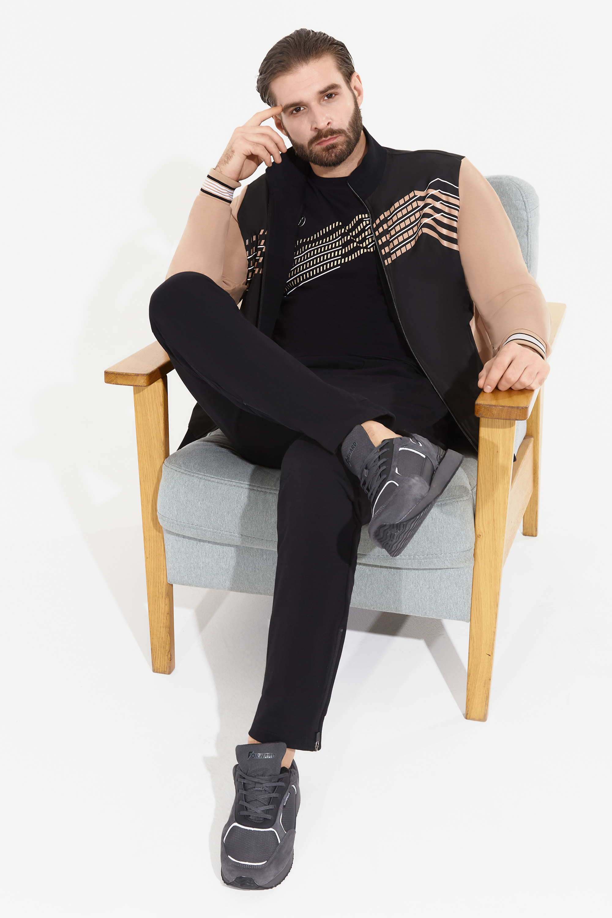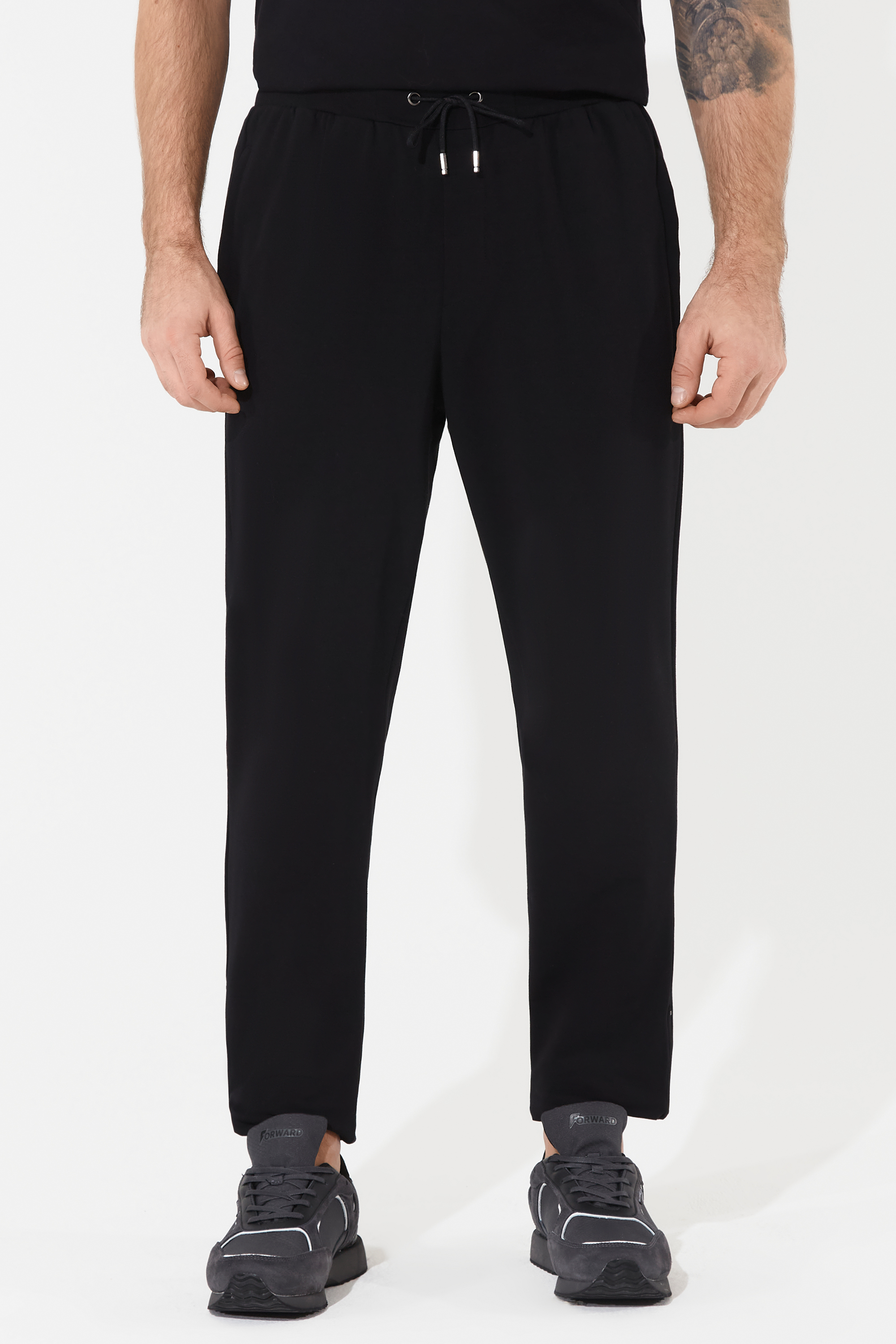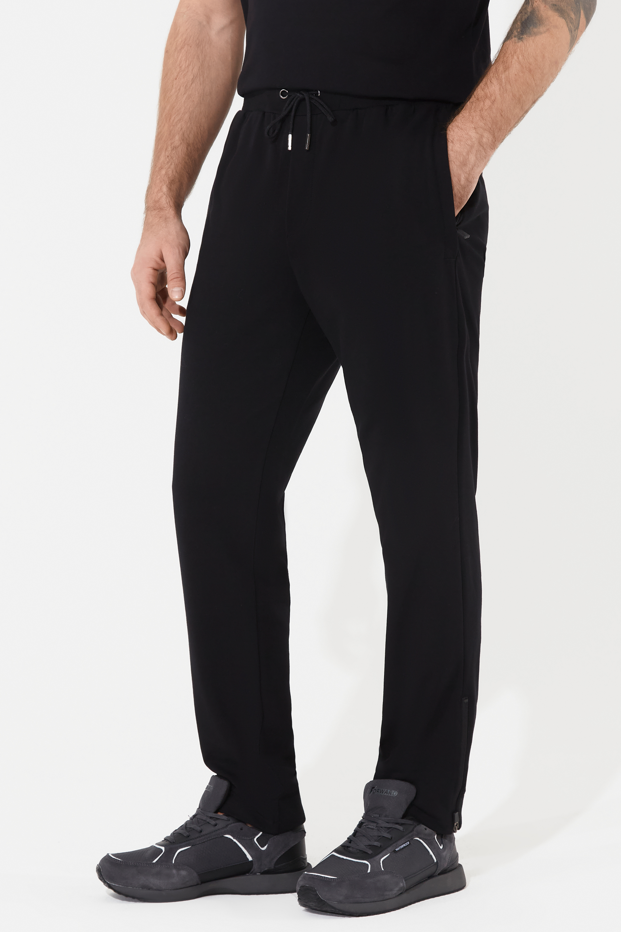 По низу брюк выполнены манжеты из трикотажного полотна ластик по задним половинкам брюк.