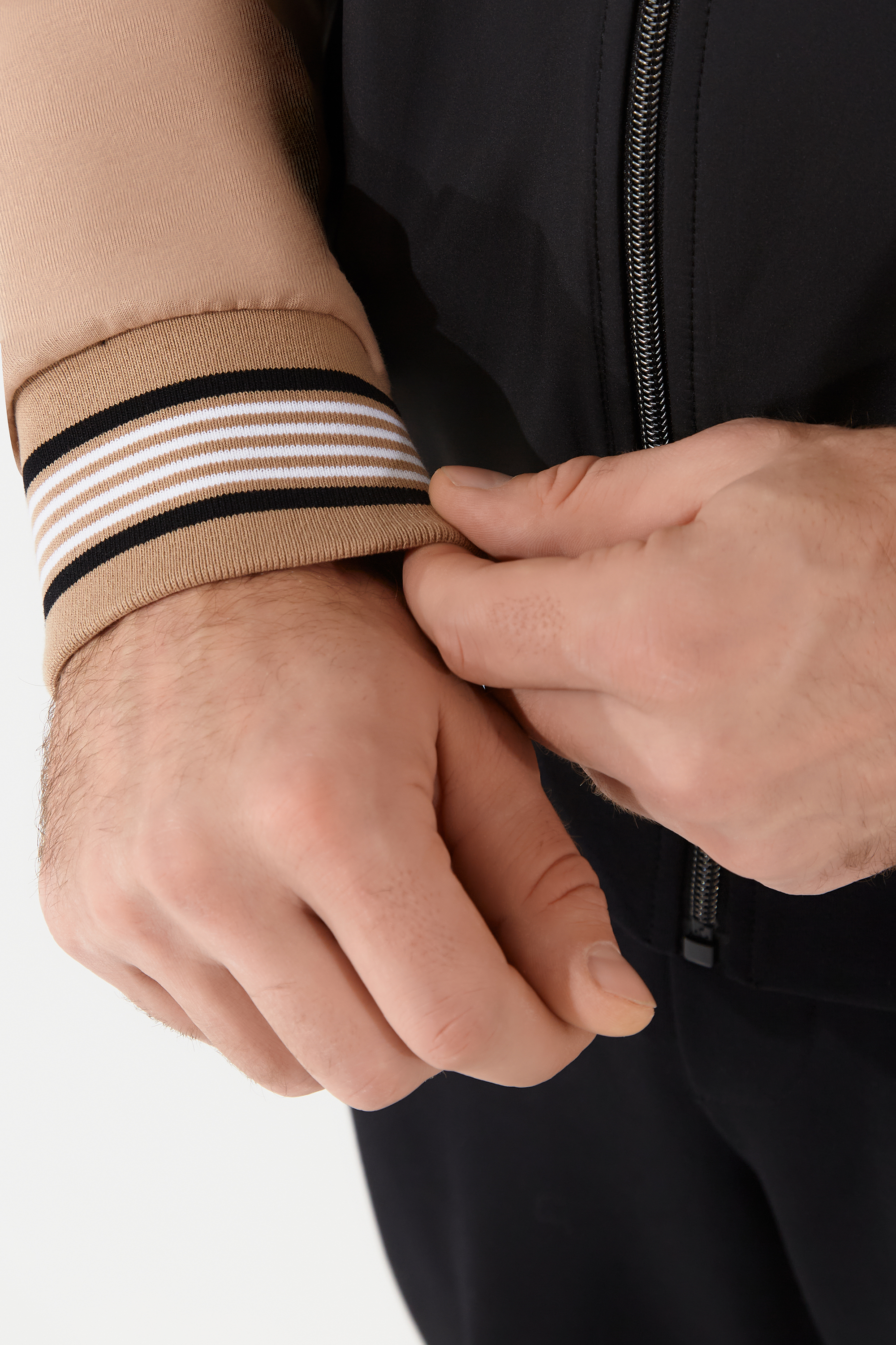 Рукава втачные. Манжеты рукавов и пояс по низу изделия выполнены из трикотажного полотна ластик.