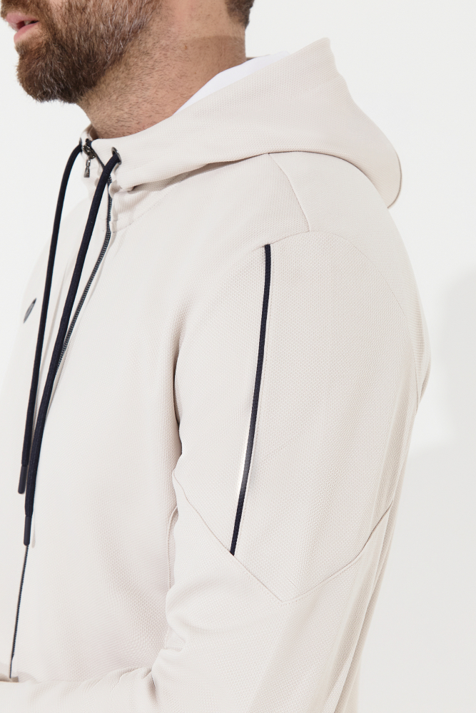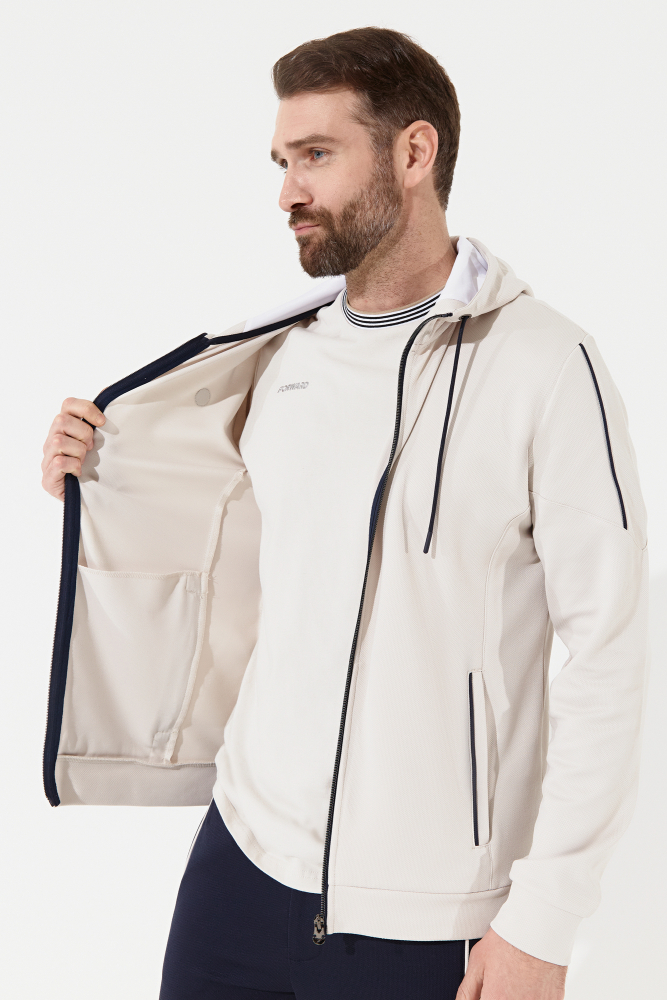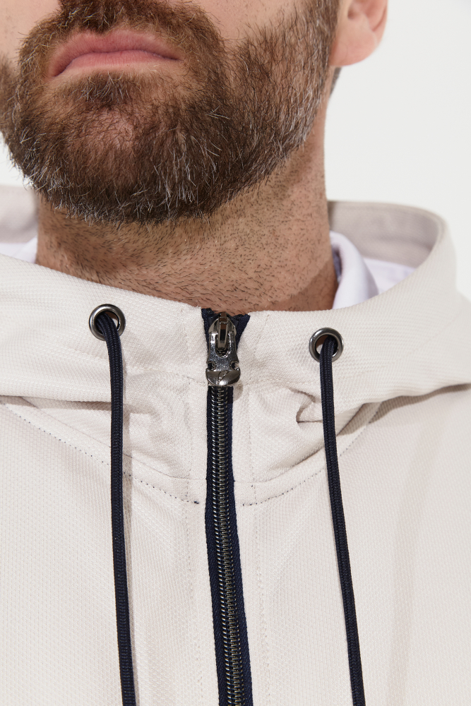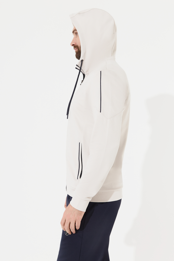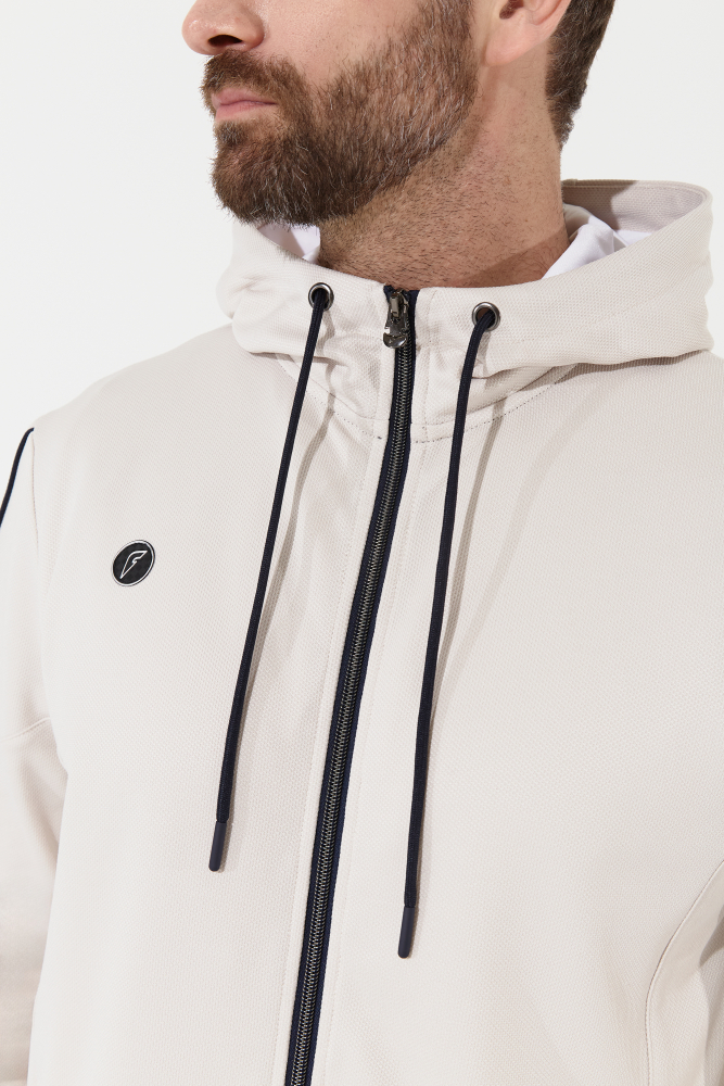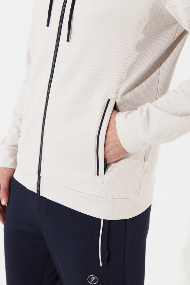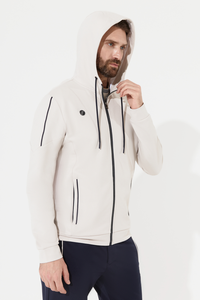 Куртка прямого силуэта выполнена из эластичного трикотажного полотна. Центральная застёжка-молния, боковые карманы на молнии с декоративным кантом обеспечивают практичность. Капюшон защищает от ветра, а фирменный принт «F» подчёркивает стиль бренда FORWARD. Втачные рукава, лёгкий материал и точный крой гарантируют свободу движений и комфорт в любых условиях.