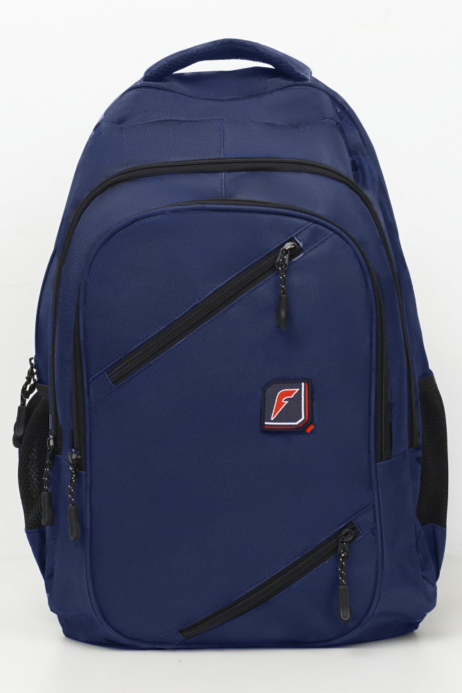 На передней части рюкзака выполнен накладной карман с двухзамковой тесьмой молнией. На котором расположены два дополнительных прорезных кармана.