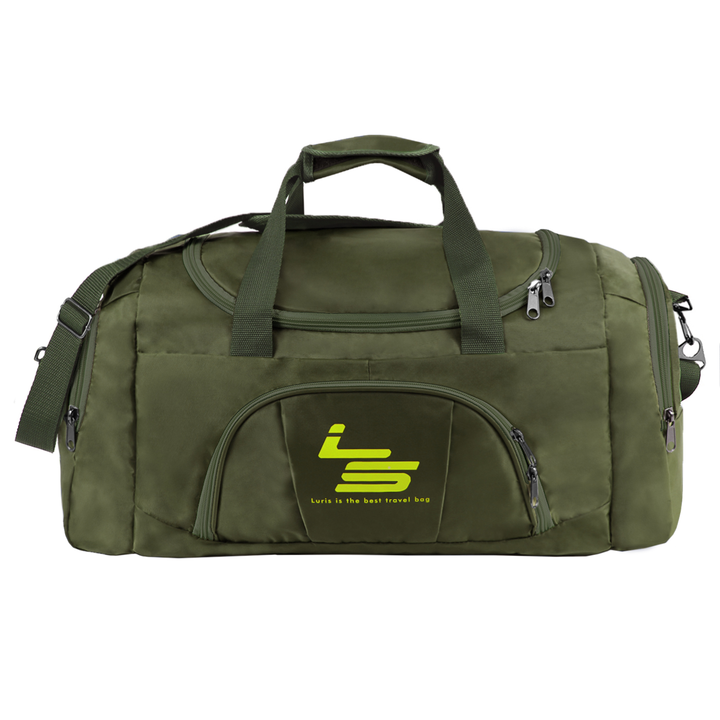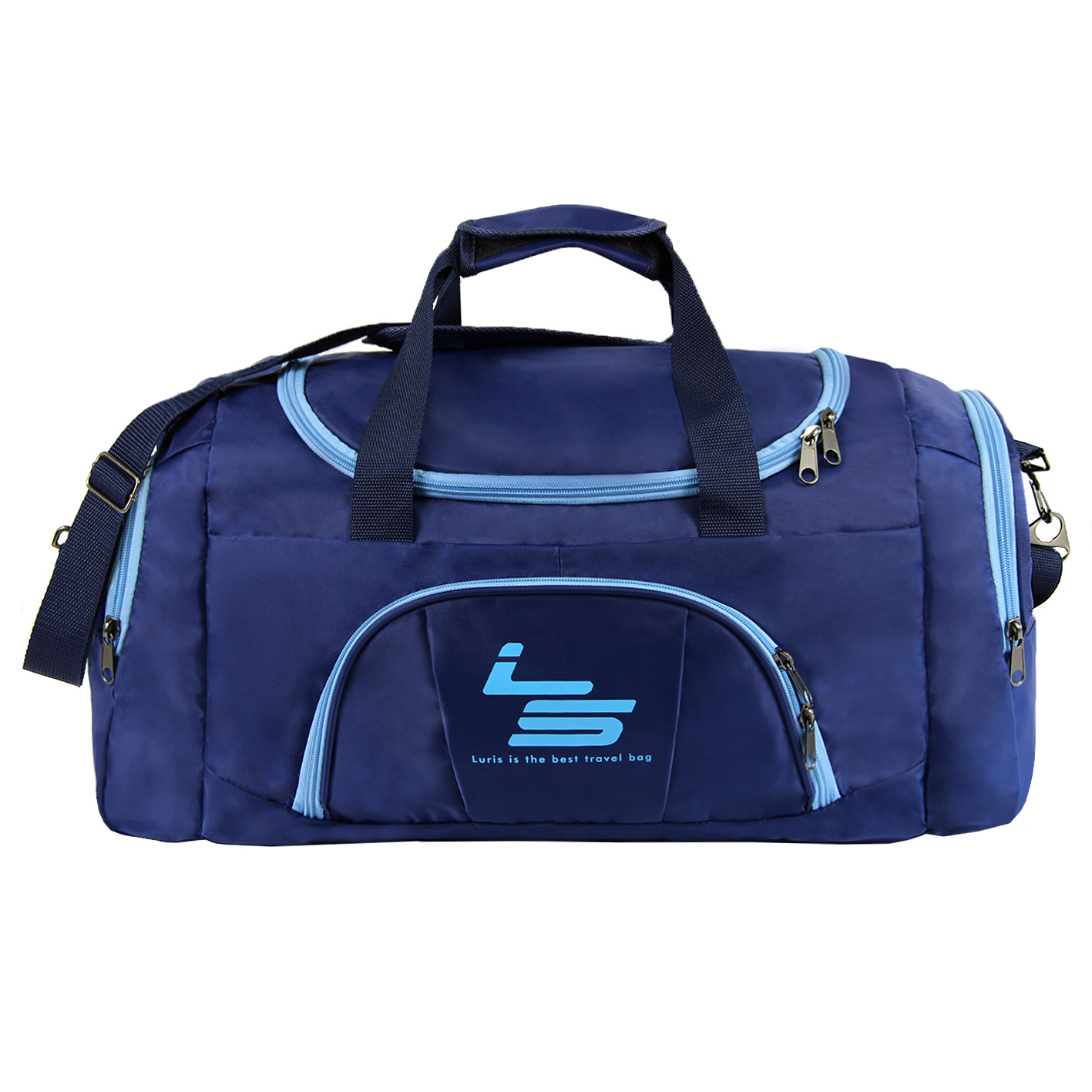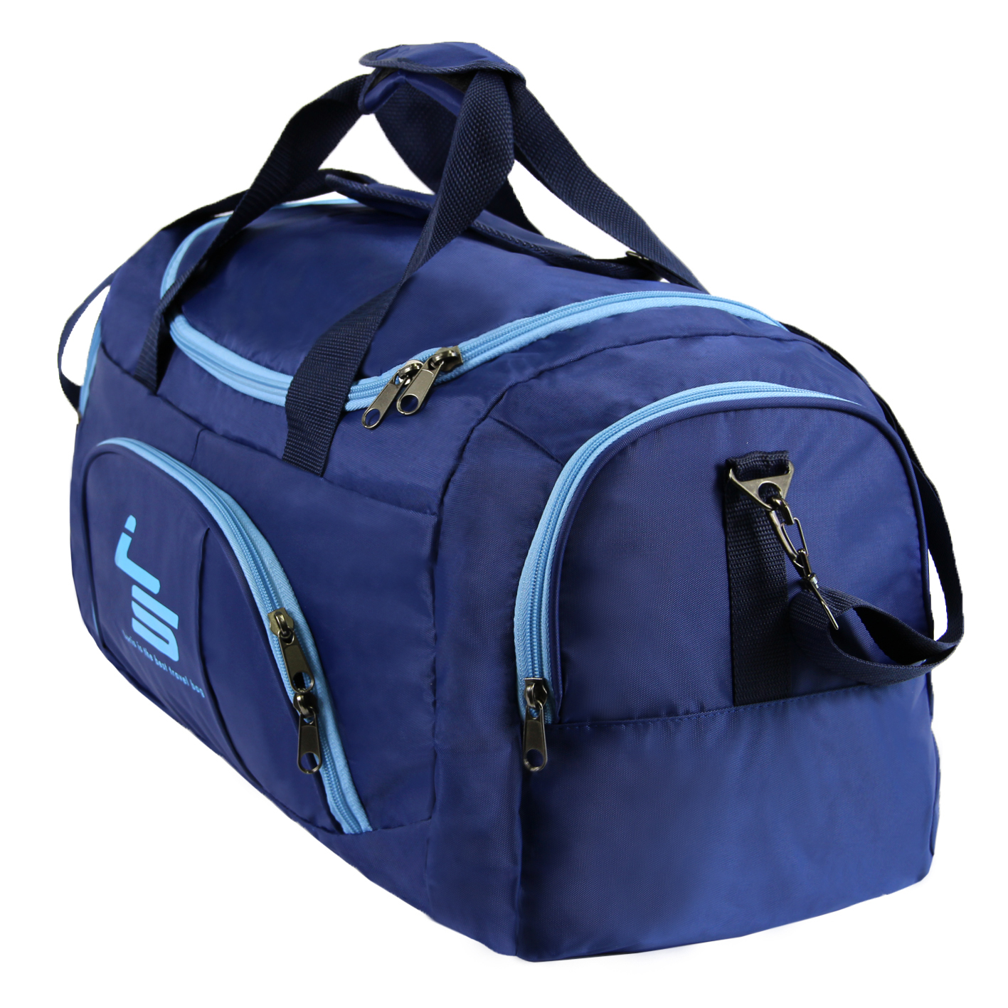 Дорожная сумка средних размеров предназначена для транспортировки личных вещей, изготовлена из прочной водоотталкивающей ткани. Имеется одно объёмное отделение, один передний карман на молнии, два боковых отдела на молнии. Фурнитура металлическая повышенной прочности. Ручки укреплены строчкой «зигзаг», оснащены ручкодержателем. В комплект входит съёмный регулируемый ремень с наплечником.