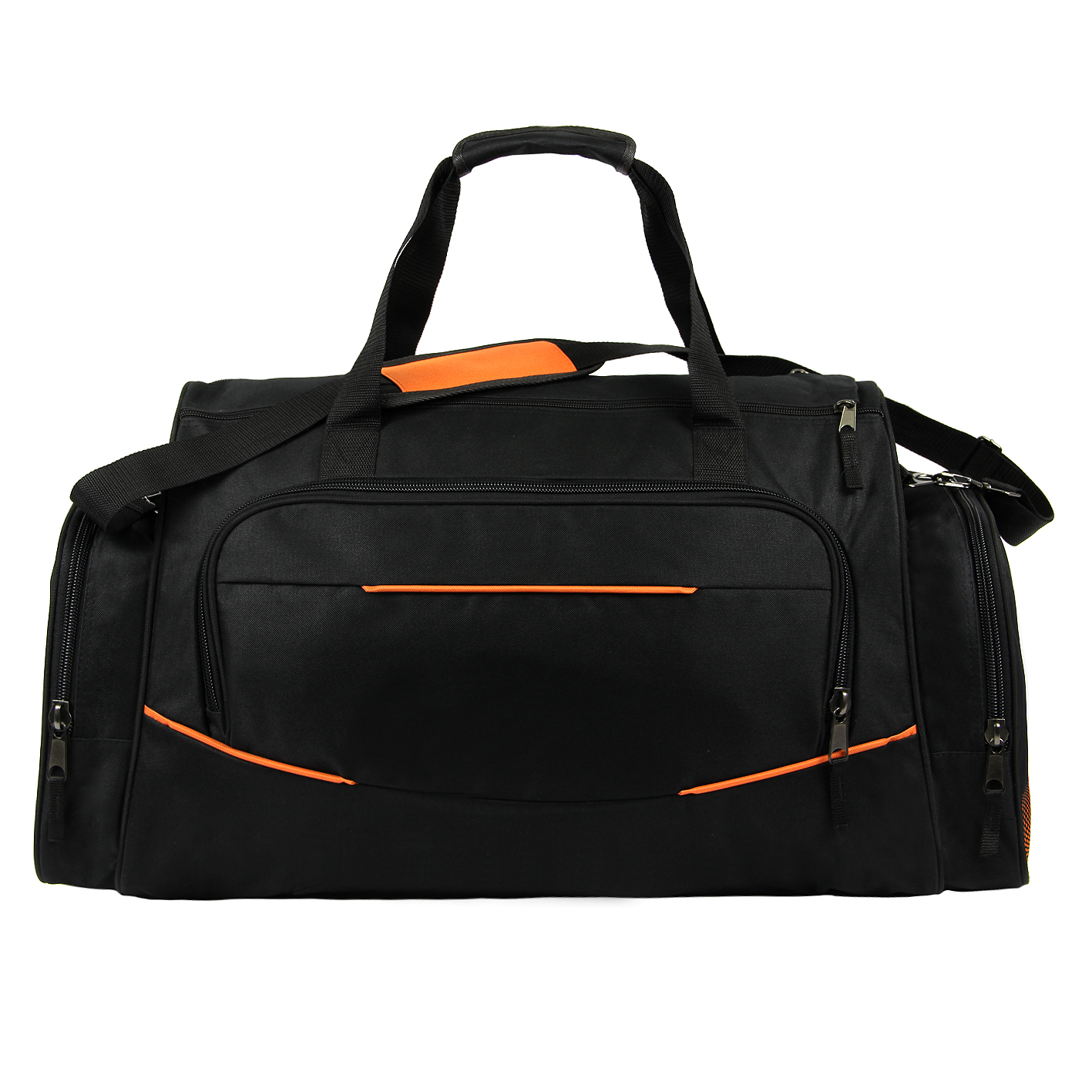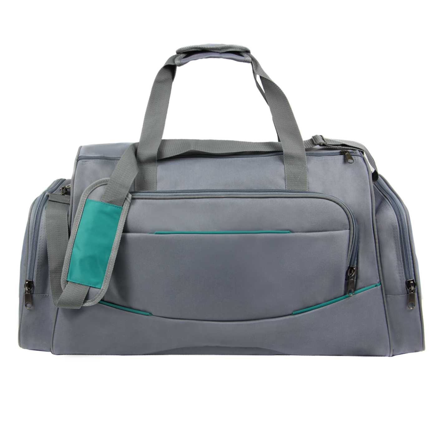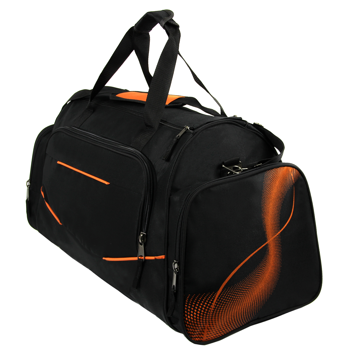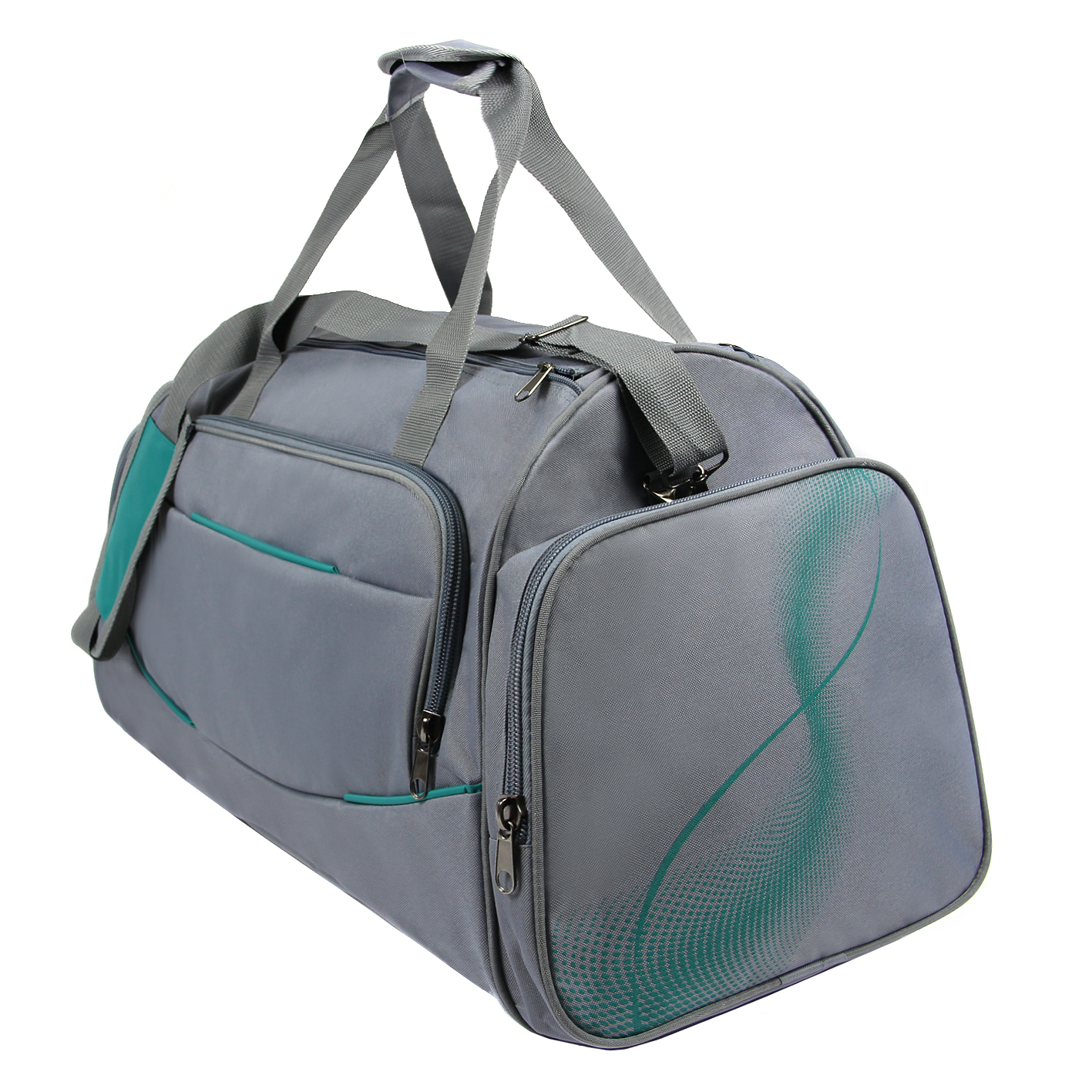 Дорожно-спортивная сумка большого объема, для транспортировки личных вещей. Изготовлена из прочной водоотталкивающей ткани. Имеется одно объёмное отделение, два малых боковых отдела, один карман на передней стенке. Ручки укреплены строчкой «зигзаг», оснащены ручкодержателем. Внутренние швы окантованы. Фурнитура металлическая, повышенной прочности. Комплектуется длинным регулируемым ремнём с наплечником.