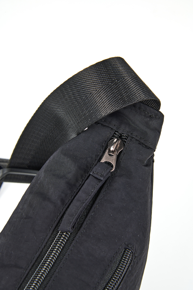 Материал, из которого сделана сумка Forward черного цвета – нейлон. Сумка имеет одно основное и одно дополнительное отделение меньшего размера сзади, которые закрывается на молнию. Сумка имеет прочную регулируемую ручку – ремень, которая позволяет носить ее через одно плечо.