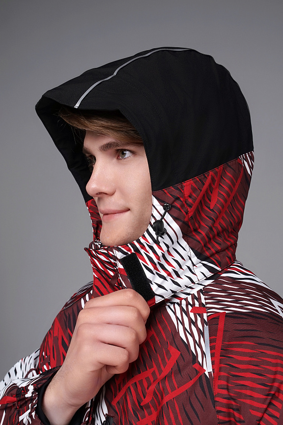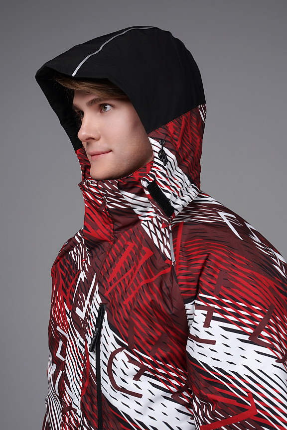 Куртка прямого силуэта с капюшоном, регулируемым по высоте и объему. Полочка с центральной застежкой на тесьму молнию с ветрозащитной планкой. В швах проймы и капюшона светоотражающие элементы. Рукава покроя реглан с внутренними манжетами и патами по низу. Боковые, нагрудный и карман на рукаве застегиваются на тесьму молнию. Куртка с вентиляцией в области проймы, на тесьму молнию. Куртка со снегозащитной юбкой. Ширина изделия по низу регулируется при помощи эластичного шнура и фиксаторов.