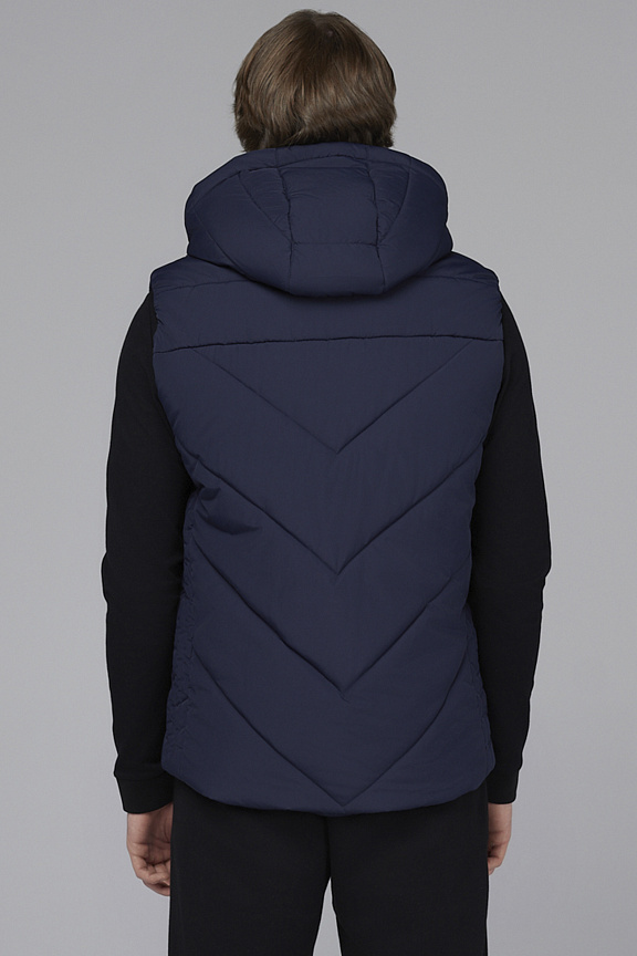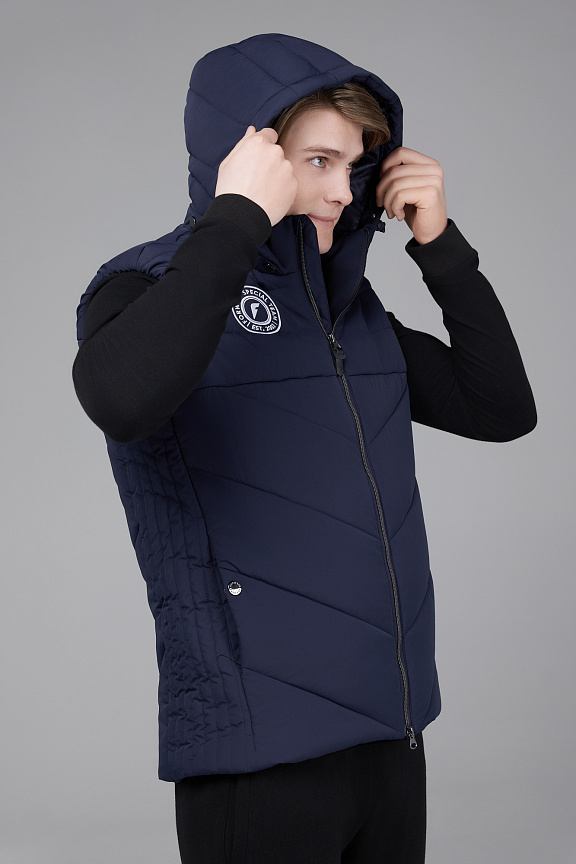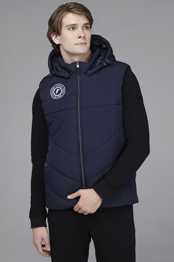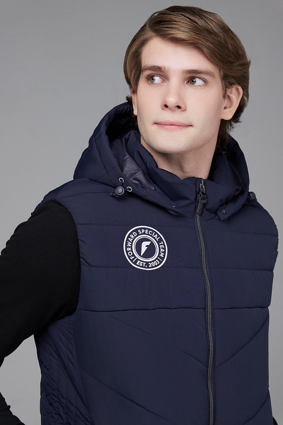 Жилет прямого силуэта с отстегивающимся капюшоном.